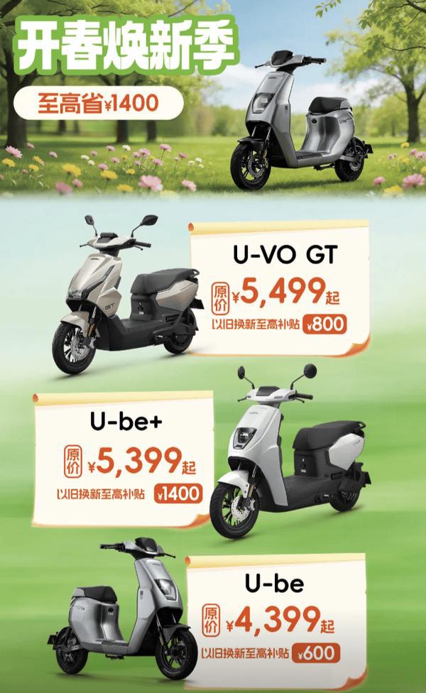【电摩之家 行情资讯】春日出行旺季来临,五羊本田正式开启 2026 年 “开春焕新季” 限时促销活动,促销活动至 3 月 31 日,旗下三款主力电动两轮车型参与本次活动,以旧换新补贴至高可达 1400 元,其中 U-VO GT 车型叠加直降 400 元优惠,为广大用户带来实打实的购车福利。