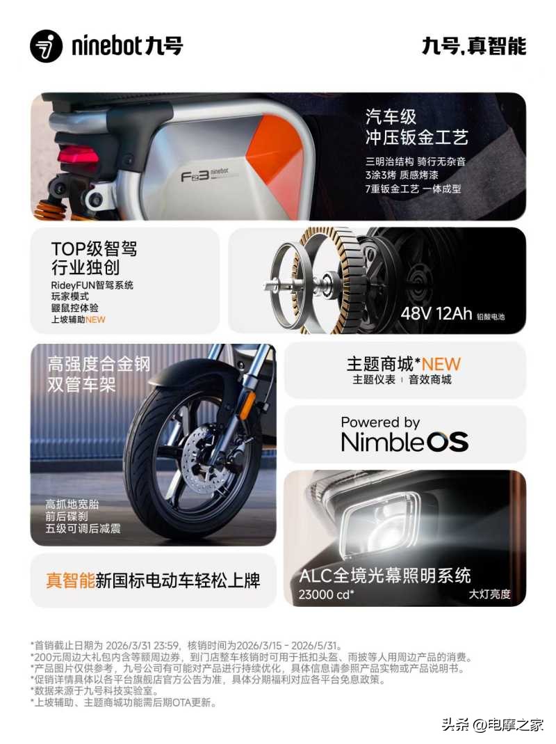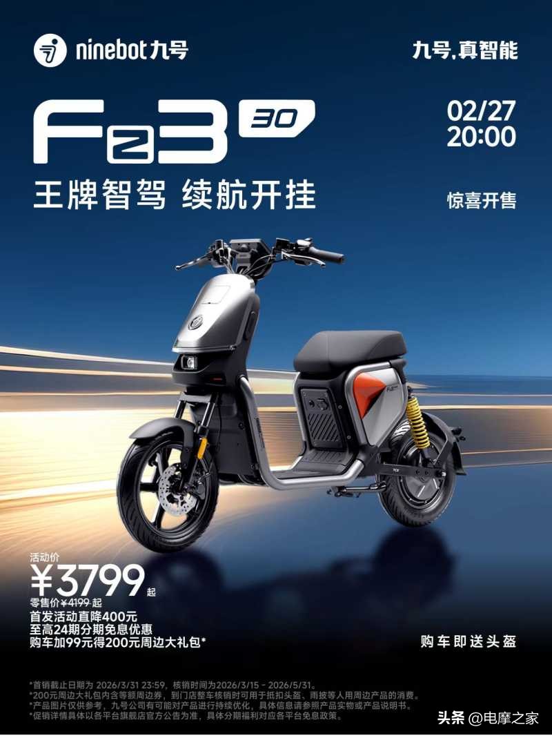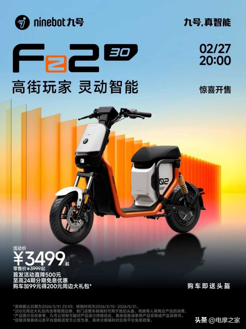电摩之家 2 月 27 日讯 九号电动今晚 20:00 正式开售Fz2 30与Fz3 30两款新国标智能电动车,定位城市日常通勤,主打高性价比与全系智能,同步推出首发直降、分期免息、购车赠礼等多重福利,为用户带来更省心的出行方案。
