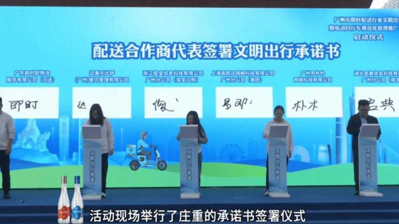 新政落地前夕,广州多部门联合举办行业规范化推广活动,头部平台、配送商及骑手代表集体签署合规承诺。由企业统一采购、完全符合新国标标准的合规配送车辆批量亮相,成为此次统一管理的核心落地载体。